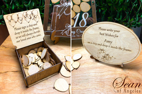 Guests will write their names on a chip, then drop it in the plaque. Then you keep it forever!